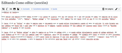 Para editar una página primero debes acceder a tu cuenta de usuario. Una vez que entras vas a ver que arriba de todas las páginas en el wiiki hay tres pestañas: "Leer", "Editar", "Editar código" y "Ver historial". Para editar hay que hacer click en una de las dos pestañas "Editar".