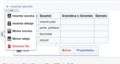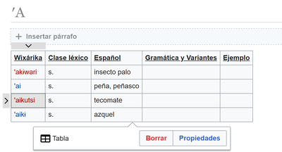 Llegando a la página verás una tabla de palabras. Para editar ves arriba en la pestaña "editar" y haces clic - ahora puedes empezar a editar. Para agregar una fila en la tabla vas a la fila donde va a quedar la palabra segun el orden alfabético (por ejemplo para agregar una palabra la palabra 'aina "cangrejo" se tendría que agregar una fila despues de aikɨ "mecate, soga").